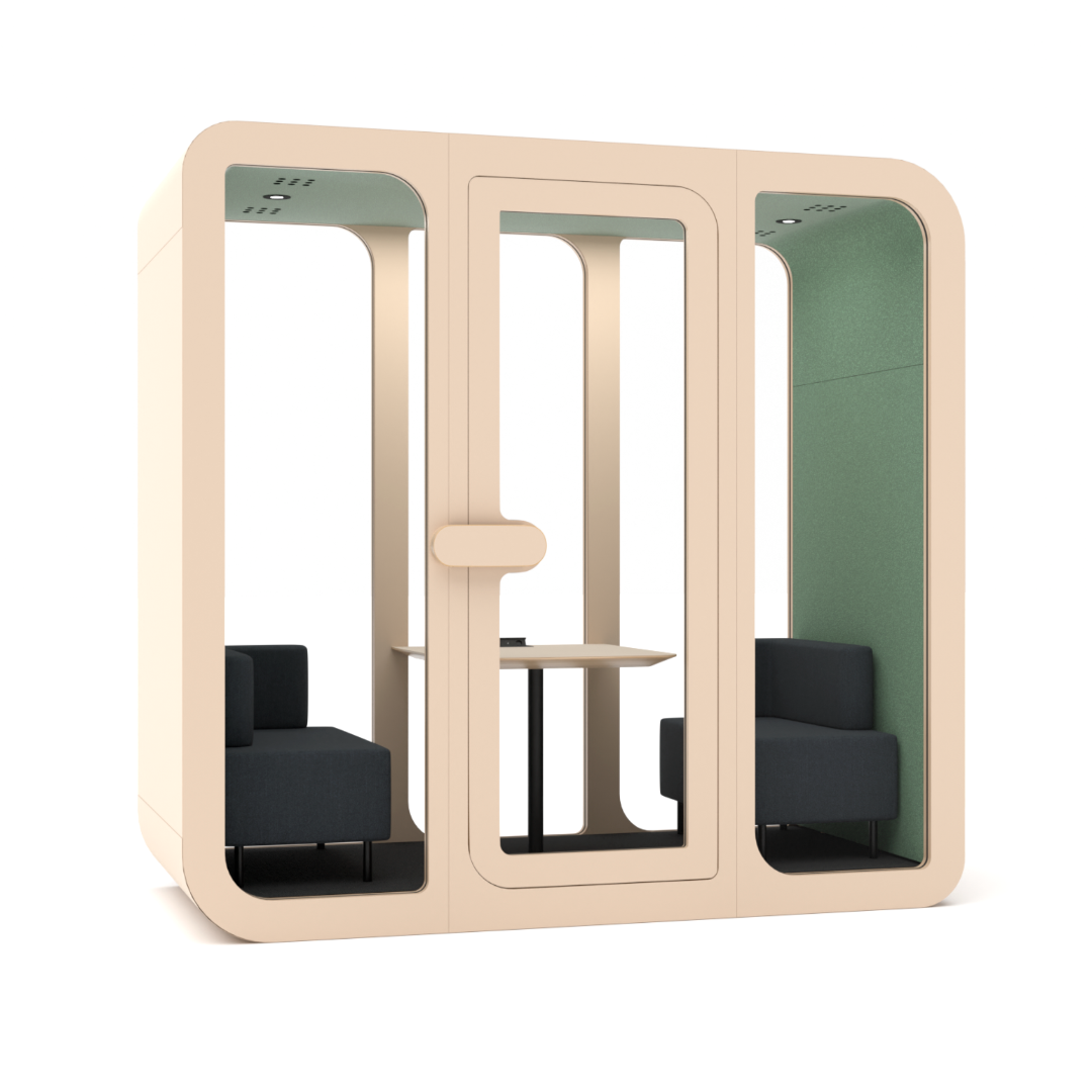 Капсула MuteMark Two великолепно подходит для ежедневной работы вдвоем, проведения собеседований, митапов тет-а-тет. В ней есть все для абсолютного комфорта и концентрации: мягкие диванчики, удобный стол со встроенными розетками и разъемами.